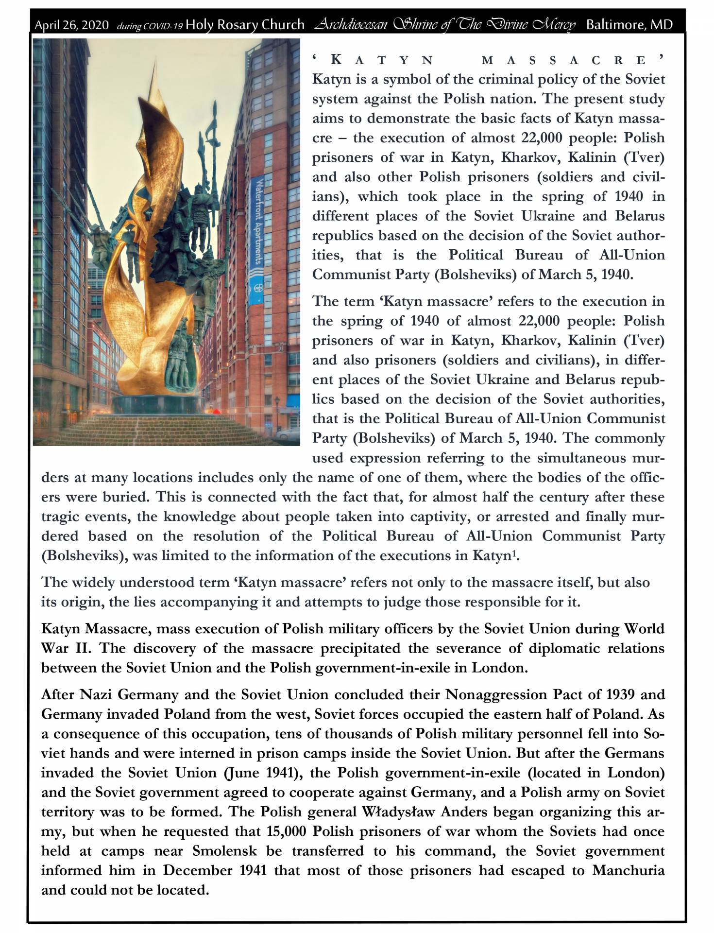 - Katyn Memorial (April 26, 2020):