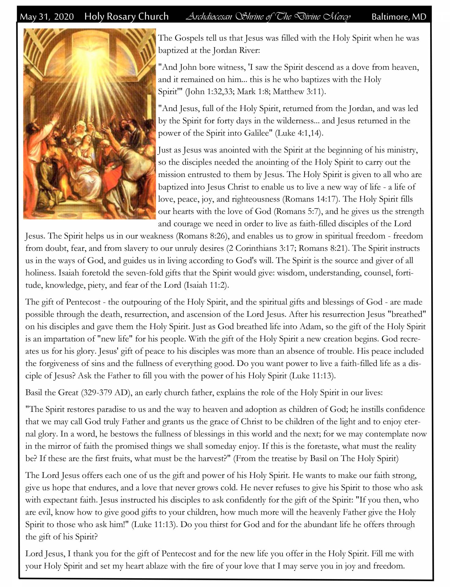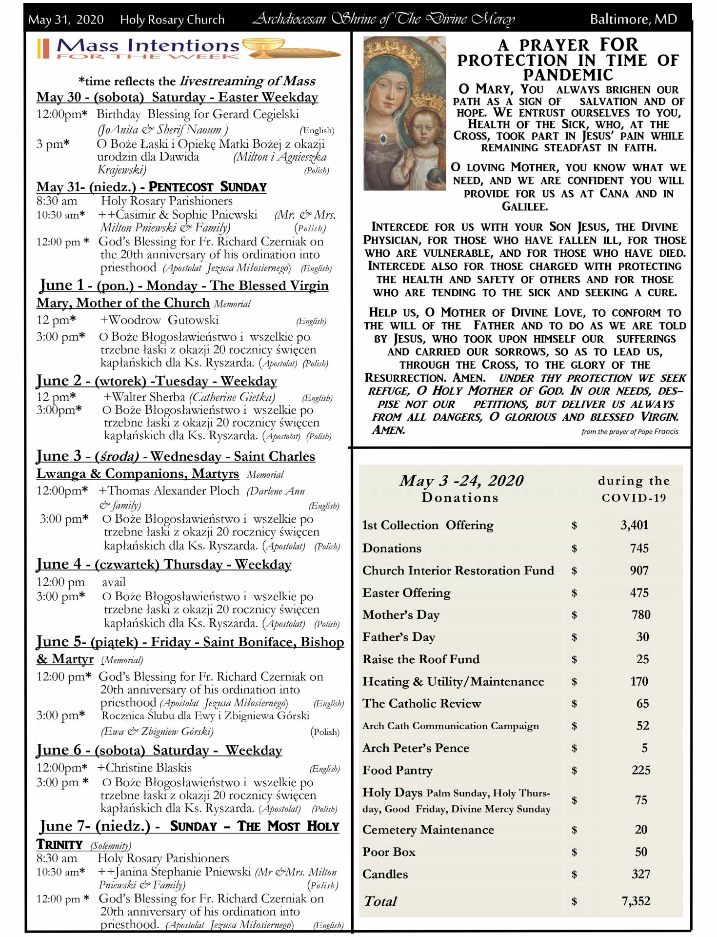 Sunday Holy Mass recording (May 31, 2020):