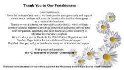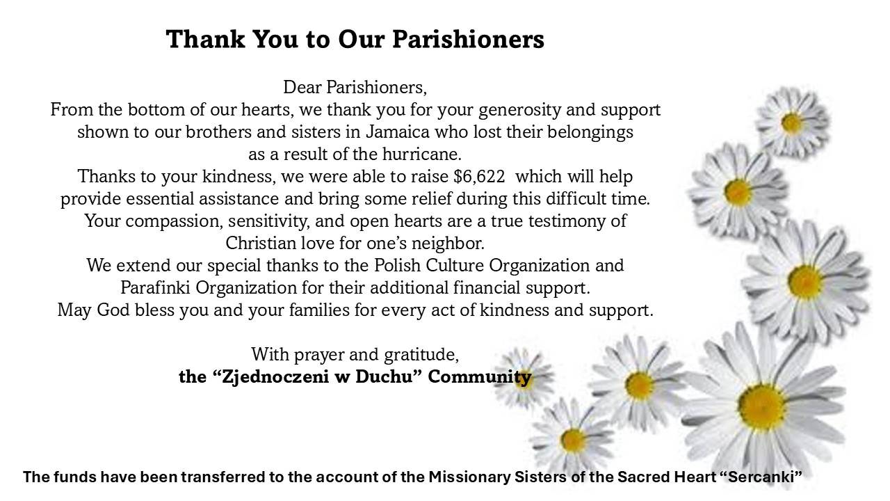 Thank you to the Parishioners, January 5, 2026