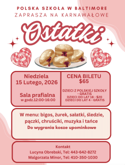 The Polish School in Baltimore invites you to a Carnival farewell celebration.
